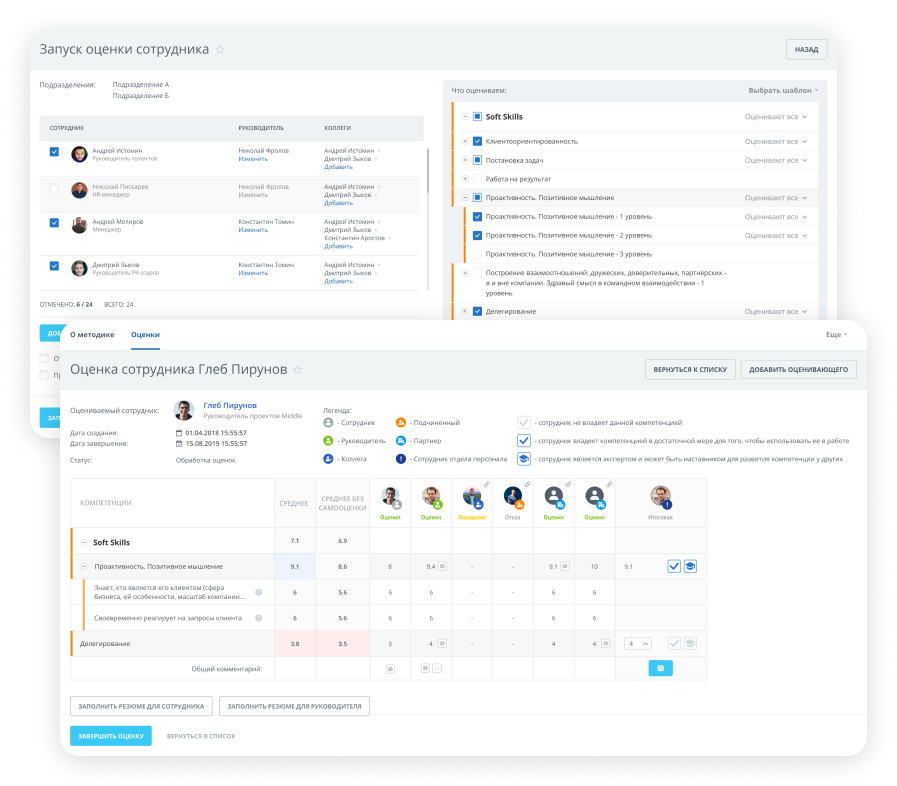 Автоматизирует процесс запуска оценки сотрудников и помогает собрать полученные данные для дальнейшего анализа HR-менеджера.